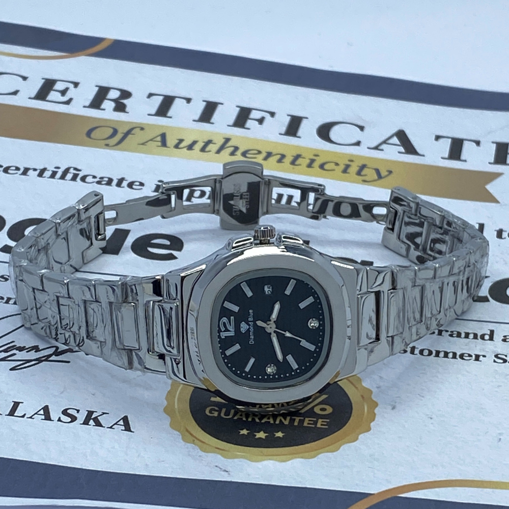 Diamond Blue Analog Quartz Movement Stainless Steel Made Couple Watch