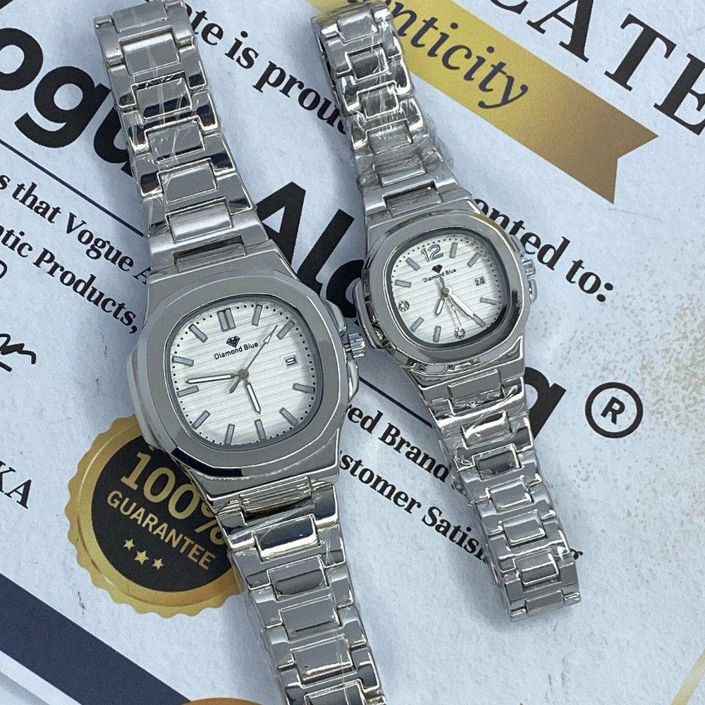Diamond Blue Luxury Analog Quartz Stainless Steel Matching Couple Watches