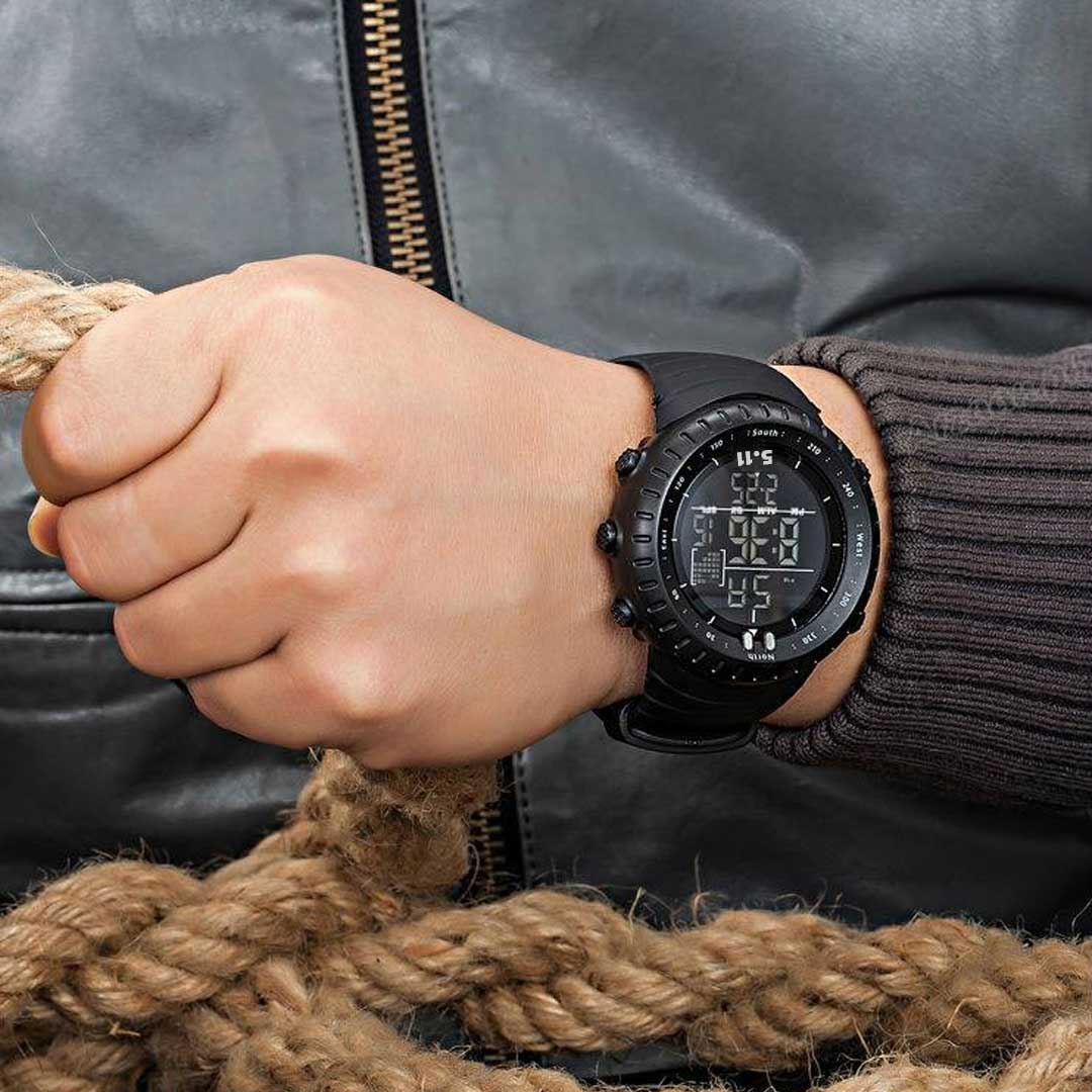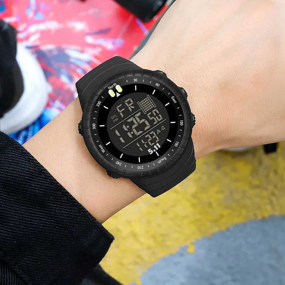 Digital Display Round Dial Rotatable Bezel Multifunctional Sports Watch For Men