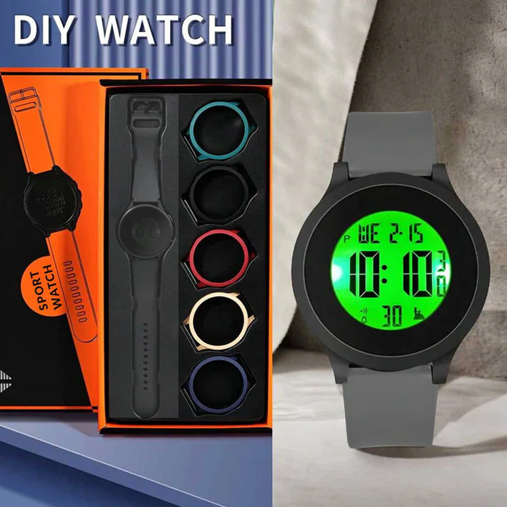 DIY Watchcase Watch- Combo Kit, Simple And Casual Sports Style Round Digital Watch