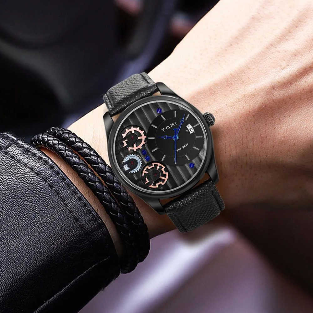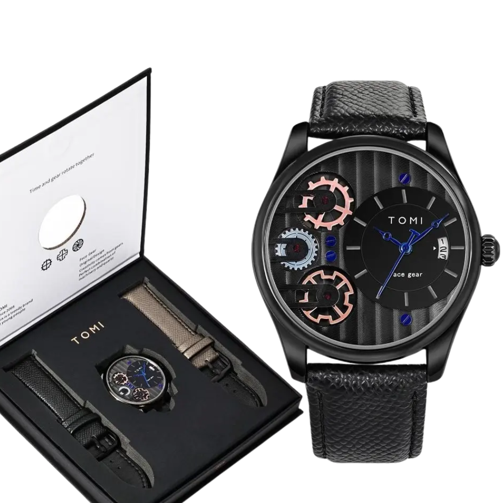 TOMI T-106 Analog Face Gear Display Dual Strap Watch For Men