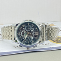 UNRAION Analog Time Skelton Dial Stainless Steel Chain Watch For Men With Date Display