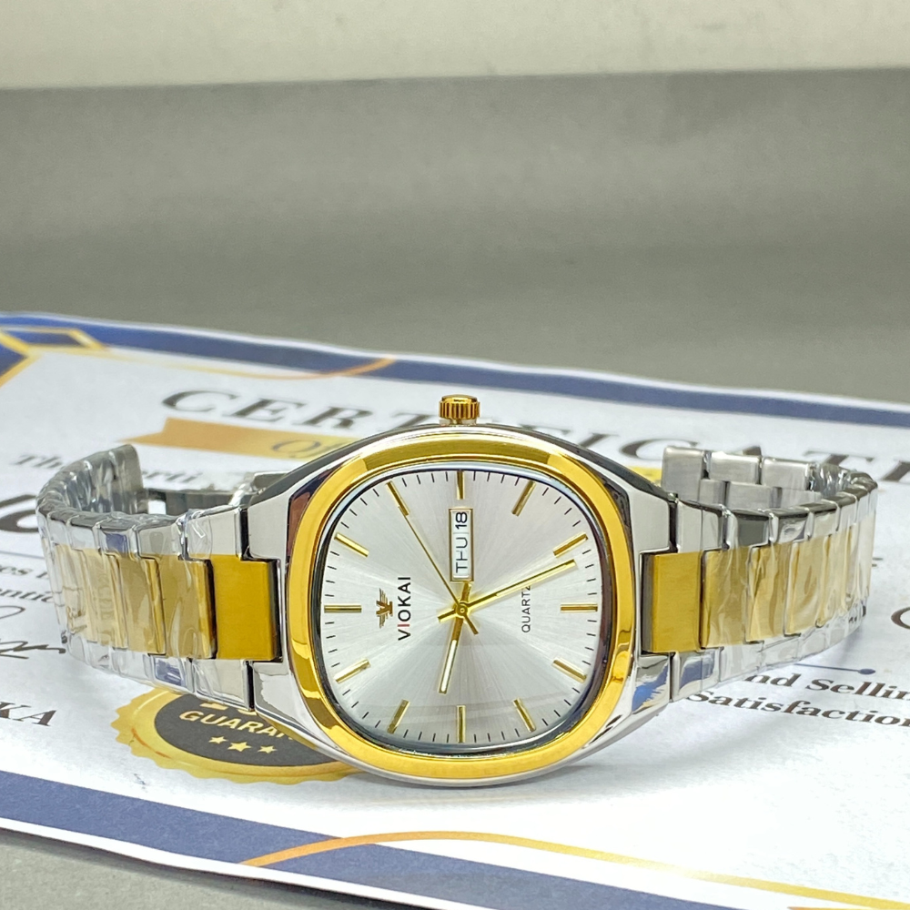 VIOKAI Slim Dial Analog Quartz Stainless Steel Made Chain Watch With Date & Day Display for Men